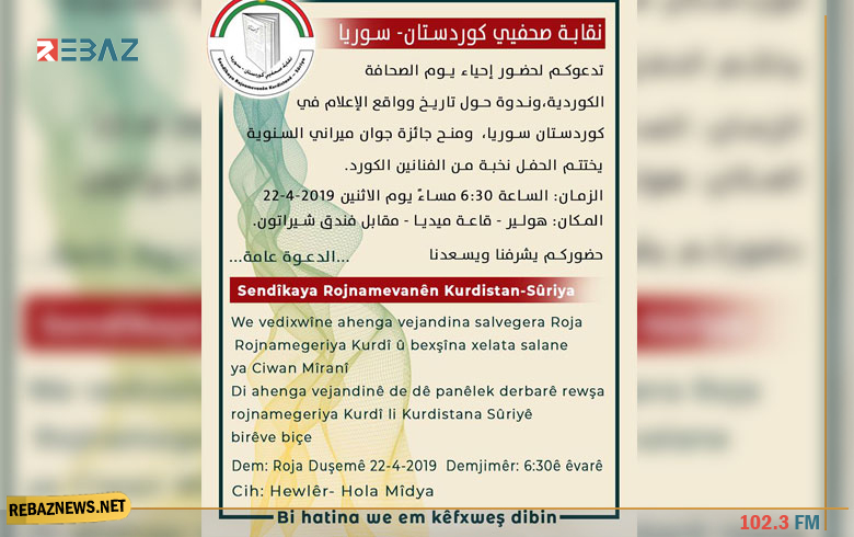 نشرت نقابة صحفيي كوردستان – سوريا, دعوة للمشاركة في إحياء يوم الصحافة الكوردية في هولير عاصمة إقليم كوردستان.