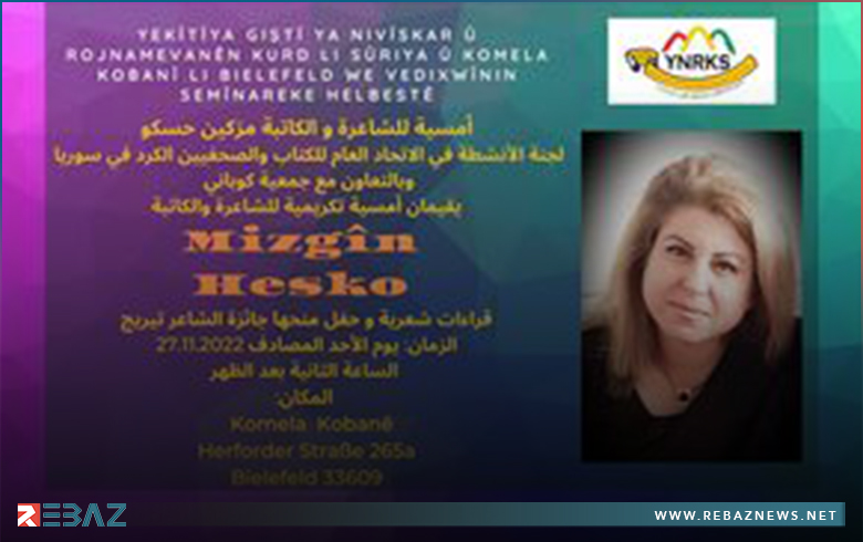 دعا الاتحاد العام للكتاب والصحفیین الكورد في سوريا وبالتعاون مع جمعية كوباني في بيلفيلد أمس, الجمعة 18 تشرین الثاني 2022, للمشاركة في أمسية شعرية.