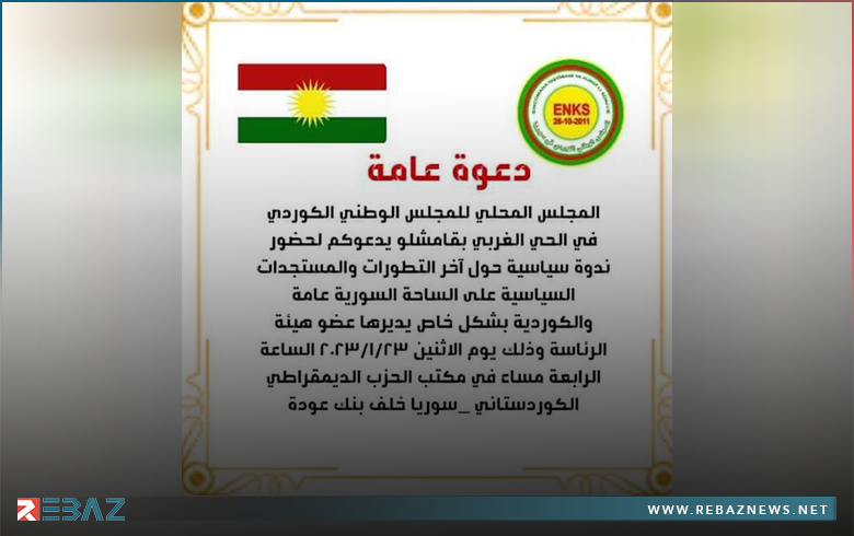 تعقد الندوة يوم الإثنين 23-01-2023، الساعة الرابعة مساءً في مكتب الحزب الديمقراطي الكوردستاني - سوريا خلف بنك عودة, والدعوةعامة.