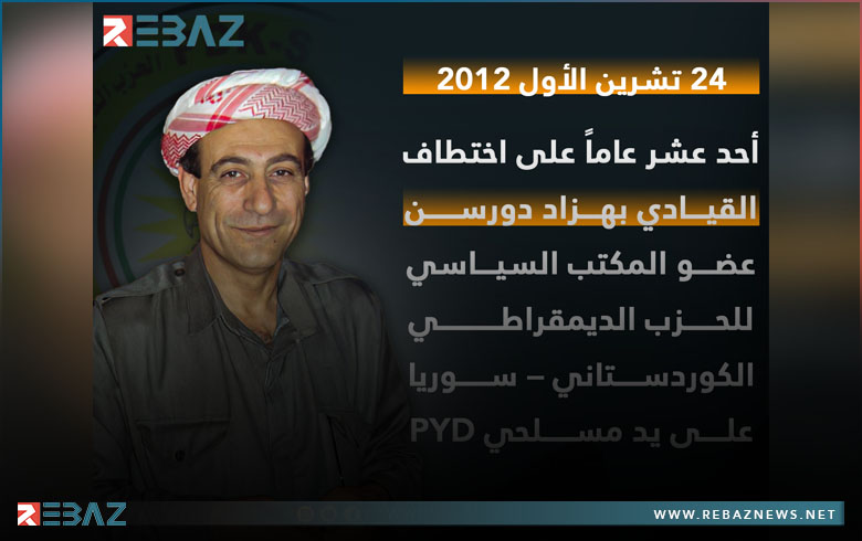 وقالت شبكة رصد سوريا لحقوق الإنسان في بيان تابعته ريباز نيوز: "يصادف اليوم 24 تشرين الأول 2023, الذكرى السنوية الحادية عشرة لاختطاف القيادي بهزاد دورسن عضو المكتب السياسي في الحزب الديمقراطي الكوردستاني – سوريا، وعضو الحزب الديمقراطي الكوردستاني – سوريا، إذ اختطفا من قبل مجموعة مسلحة تابعة لحزب الاتحاد الديمقراطي PYD في محيط مدينة ديريك".