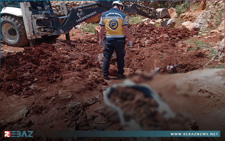 وبثت الصفحات صوراً تظهر انتشار عناصر من "الدفاع المدني السوري" والأهالي وآليات الحفر في موقع المقبرة، إلى جانب عظام بشرية وبقايا ملابس كانت موجودة في المقبرة.