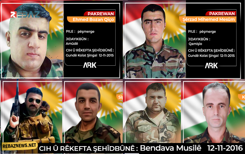 تمر علينا اليوم الثلاثاء الـ12 -11الذكـرى السنويـة الرابعـة لاستشهـاد الشهيـدان أحمد بوزان قجو وشيرزاد محمد معصوم،في محور شنكـال "قريـة كولات " أثناء معركة مواجهة تنظيم داعش الارهابي ،بعد أن قدما مع رفاقهم البيشمركة ملحمة بطولية دفاعـاً عن أراضـي كوردستـان وشعبها.