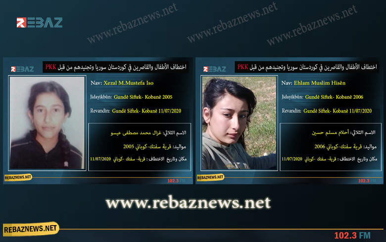 كشف مصدر مطلع من مدينة كوباني يوم الاثنين 13 تموز 2020, عن اسمين آخرين لفتاتين قاصرتين اختطفتا من قبل PKK فی كوبانی بكوردستان سوریا.